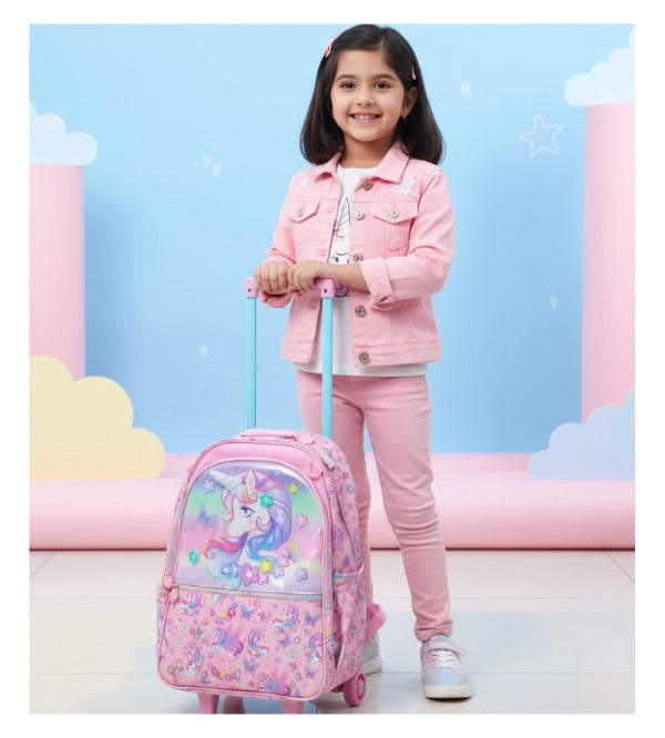 Vest Brand Unicorn Fantasy School Trolley Bag for Kids – Grade 1 to 3 | Durable & Spacious Rolling Backpack (U2113)
