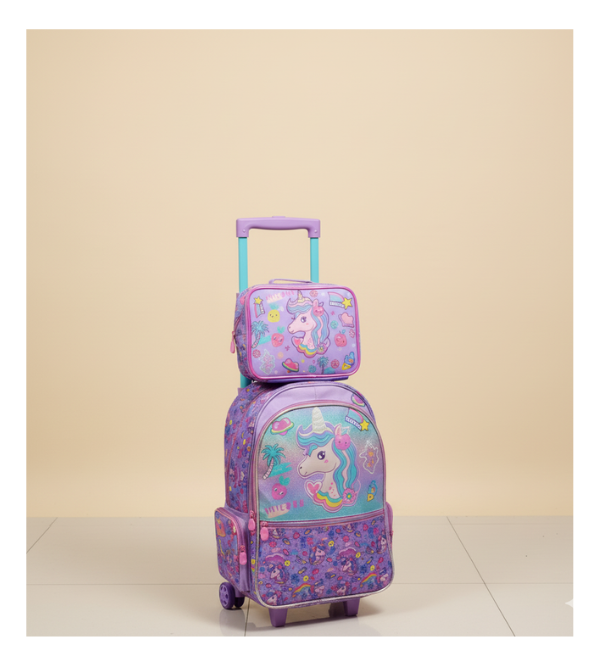 Vest Brand Unicorn Trolley School Bag Set with Matching Insulated Lunch Bag – Premium Kids Travel & School Set | Grade 1–5 (U2116)