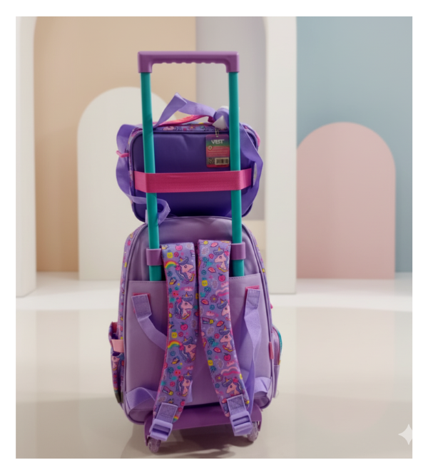 Bring a touch of magic to every school day with the Vest Brand Unicorn School Trolley Bag and Matching Insulated Lunch Bag Set, available exclusively at Kids Care Pakistan! Designed for little dreamers who adore unicorns, rainbows, and all things cute, this premium-quality set is perfect for Grade 1 to Grade 5 students.