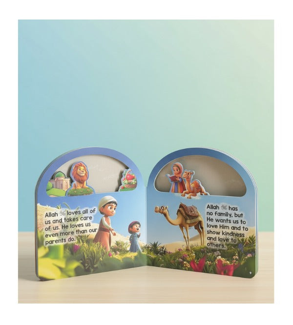 Introduce your child to the most important question with Who is Allah, a beautifully illustrated die cut interactive Islamic board book for kids. Designed with durable wipe and clean material, this book provides parents with a simple and joyful way to teach children about Allah, His love, and His blessings.