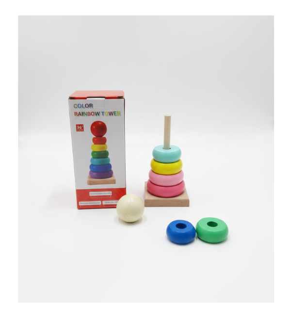 Crafted with precision, our Wooden Ring Tower boasts smooth edges and a flawless finish, ensuring the safety of your child during playtime. The set comes complete with 6 vibrant and colorful rings, adding a fun and visually stimulating element to the learning experience.