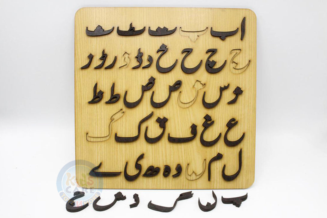 - This is the beautiful wooden alphabet letter for kids to learn urdu. This set contains beautiful pieces of wood cut in the shape of the well known urdu alphabet letters. Now you can learn the Urdu alphabets. Practice urdu alphabet writing easily with this well crafted wooden display board. As you practice writing on the wooden board, it is easier to learn the strokes. our wooden letters can be used to create words and sentences. it helps in learning the urdu alphabets, names and words by kids.